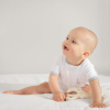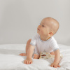 Het pakje is wit en heeft korte mouwen. Dankzij de drukknopen aan de achterkant en bij de beentjes kan je het pakje gemakkelijk aan en uit doen bij je kindje.