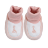Deze slofjes met Sophie de giraf print houden de babyvoetjes lekker warm.